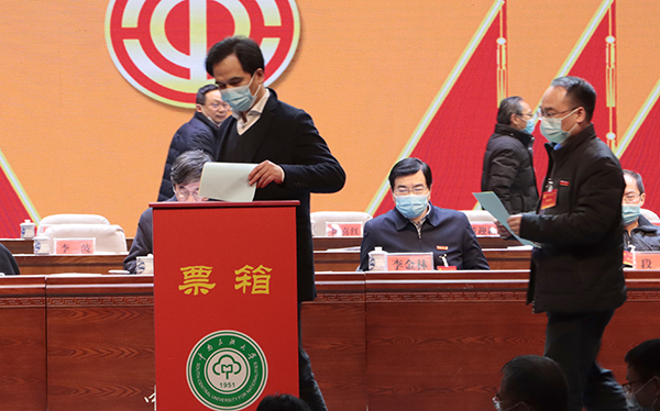 校黨委副書記、副校長、校工會主席宋發軍以《凝心聚力 團結奮進 為建成現代化高水平民族大學貢獻力量》為題作工會工作報告。報告回顧了第六屆工會委員會5年來的工作,提出了今后5年工會工作的努力方向:大力推進凝心聚力工程,引領教職工聽黨話、跟黨走;深入實施維權幫扶工程,更好滿足教職工對美好生活的向往;扎實開展固本強基工程,不斷增強工會組織的吸引力和影響力。