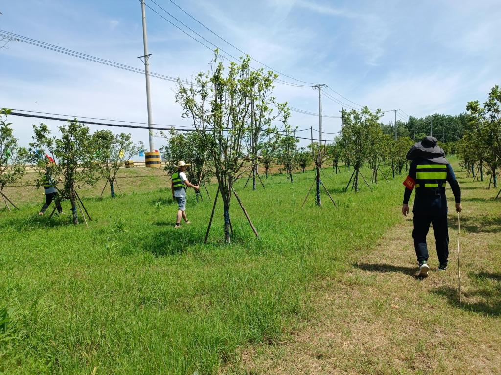 防汛突擊隊(duì)員在烈日下巡堤。 后勤保障處供圖