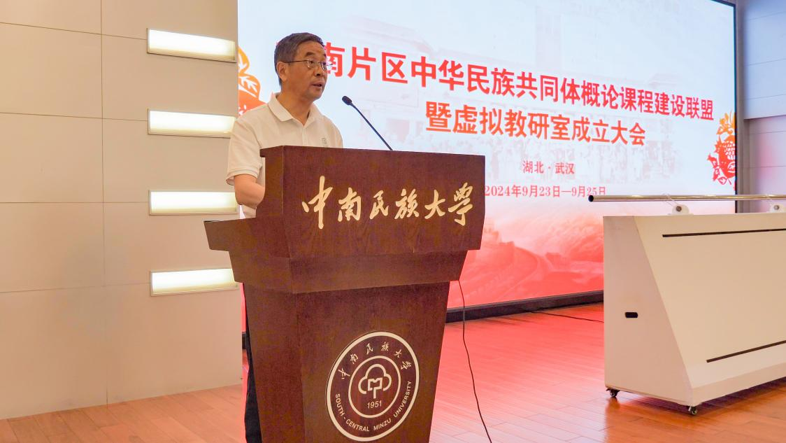 9月24日上午,由國家民委教育司、湖北省民宗委、湖北省教育廳和武漢市民宗委指導,我校主辦的中南片區中華民族共同體概論課程建設聯盟暨虛擬教研室成立大會在我校學術交流中心召開。國家民委教育司一級巡視員李學鋒,湖北省民宗委黨組成員、副主任趙軍章,湖北省委教育工委組織處處長、一級調研員喬志強,武漢市委統戰部副部長、市民宗委黨組書記、主任朱紹華,浙江大學國家制度研究院沈桂萍教授,我校黨委書記邊境,黨委副書記、校長劉義,黨委副書記、副校長宋發軍,以及來自江西、河南等12個省市35所高校的專家學者以及校內相關單位領導及師生代表出席本次大會。會議由我校黨委副書記、校長劉義主持。