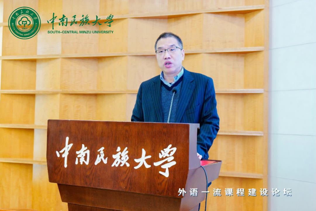 宋發(fā)軍致辭,對與會專家及師生表示熱烈歡迎,并介紹了學(xué)校和外語學(xué)院的基本情況。他指出,一流課程是培養(yǎng)一流人才的基礎(chǔ),是推動外語專業(yè)建設(shè)和外語學(xué)科持續(xù)發(fā)展的關(guān)鍵。希望通過本次論壇,能夠匯聚各方智慧,共同探討和分享外語課程建設(shè)的最新理念、實踐成果與未來趨勢。