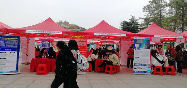 11月20日上午,我校2021屆畢業生中型校園招聘會暨鋁業行業校企對接會在南區一、二食堂之間舉行。湖北省亨威鋁業有限公司、中建鼎元建設工程有限公司、武漢凌翔建筑裝飾工程有限公司等31家企事業單位參會,提供銷售、管理、化驗員、質檢員、軟件開發、會計、技術檢測等崗位500個。武漢市鋁業協會秘書長樊斌、我校副校長杜冬云及相關部門負責人前往現場了解招聘情況并指導工作。