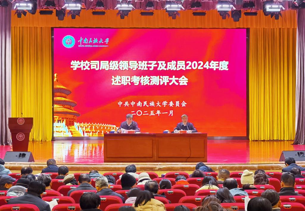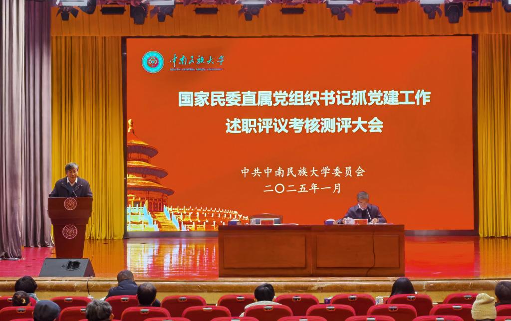 1月7日下午,按照國家民委黨組、湖北省委關于2024年度考核工作的統一部署,學校召開司局級領導班子及成員2024年度綜合述職考核測評大會暨國家民委直屬黨組織書記抓黨建工作述職評議考核大會。國家民委機關黨委領導、校黨委常委、其他校“兩委”委員、各二級單位主要負責同志、其他正處級干部、正高級職稱專業技術人員、教代會代表、“兩代表一委員”參加會議。會議由校黨委副書記、校長劉義主持。