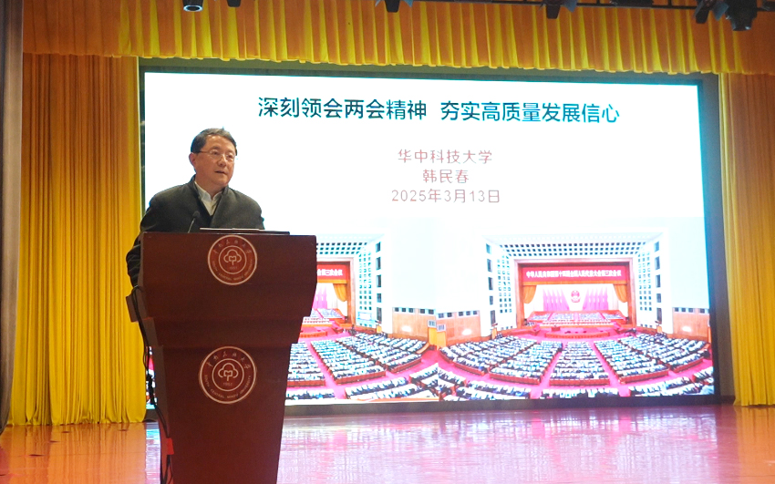 第十四屆全國政協委員、民建湖北省委會副主委、華中科技大學經濟學院教授韓民春傳達學習了全國政協十四屆三次會議主要精神,重點圍繞習近平總書記在看望參加政協會議的民盟、民進、教育界委員時的重要講話精神進行了專題講解,梳理了《政府工作報告》中明確的2025年十大重點任務,并結合自己歷年提案情況分享了參會的所見、所感、所悟。
