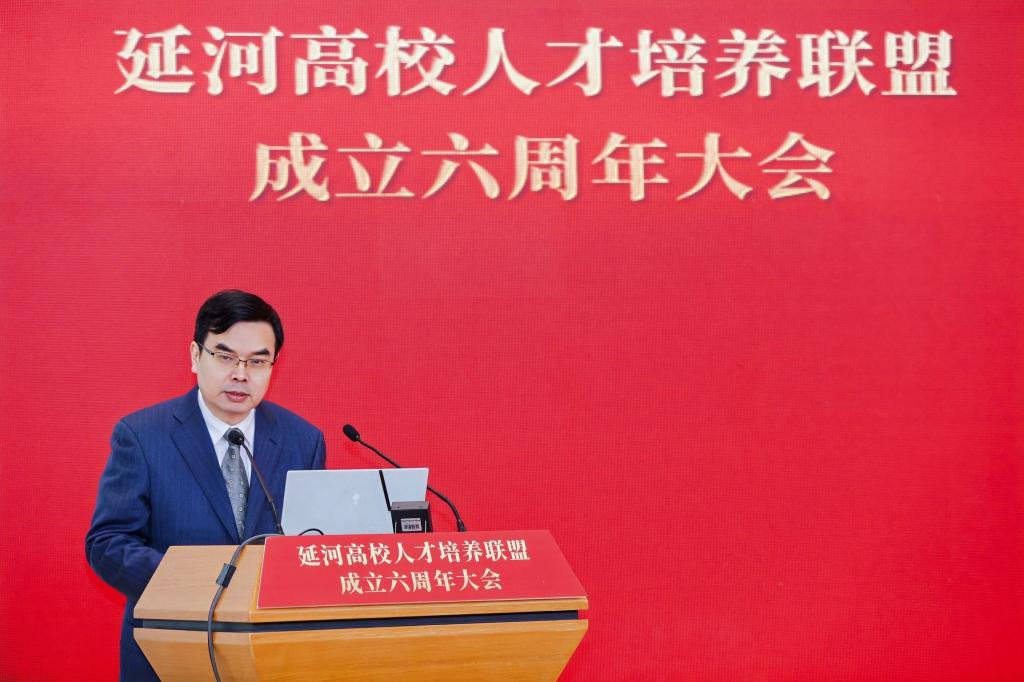 會(huì)上,浙江省嘉興市委常委、副市長(zhǎng)齊力,五周年大會(huì)承辦高校中國(guó)農(nóng)業(yè)大學(xué)黨委書(shū)記、中國(guó)工程院院士鐘登華,六周年大會(huì)承辦高校中央民族大學(xué)黨委副書(shū)記、校長(zhǎng)強(qiáng)世功先后致辭。秘書(shū)處高校北京理工大學(xué)黨委書(shū)記、中國(guó)工程院院士張軍作聯(lián)盟工作報(bào)告,輪值主席高校中國(guó)人民大學(xué)黨委副書(shū)記鄭水泉發(fā)布聯(lián)盟2025年工作計(jì)劃。新加盟高校黑龍江大學(xué)校長(zhǎng)王敬波發(fā)言。中國(guó)延安精神研究會(huì)副會(huì)長(zhǎng)林炎志、教育部思想政治工作司副司長(zhǎng)孫芙蓉分別講話。會(huì)上舉行了“延河聯(lián)盟智慧教育育人基地”揭牌儀式,為人才培養(yǎng)模式創(chuàng)新注入新動(dòng)能。