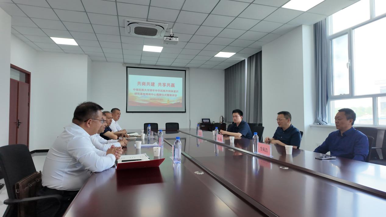 揭牌儀式后,雙方舉行座談。座談會上,覃瑞介紹了我校辦學歷史、辦學成效和“文優、理強、工精、藝卓”的學科專業布局。木合甫力?艾山介紹了博州在鑄牢中華民族共同體意識方面的工作情況和主要成績。雙方一致表示,希望以此次揭牌儀式為起點,實體性推進校地“雙向賦能”合作模式,既充分發揮中南民族大學鑄牢中華民族共同體意識研究基地在理論研究、師資力量等方面的優勢,也利用好博州在鑄牢中華民族共同體意識方面豐富的實踐經驗,持續推動共同體意識研究闡釋,不斷開創新時代黨的民族工作新局面。