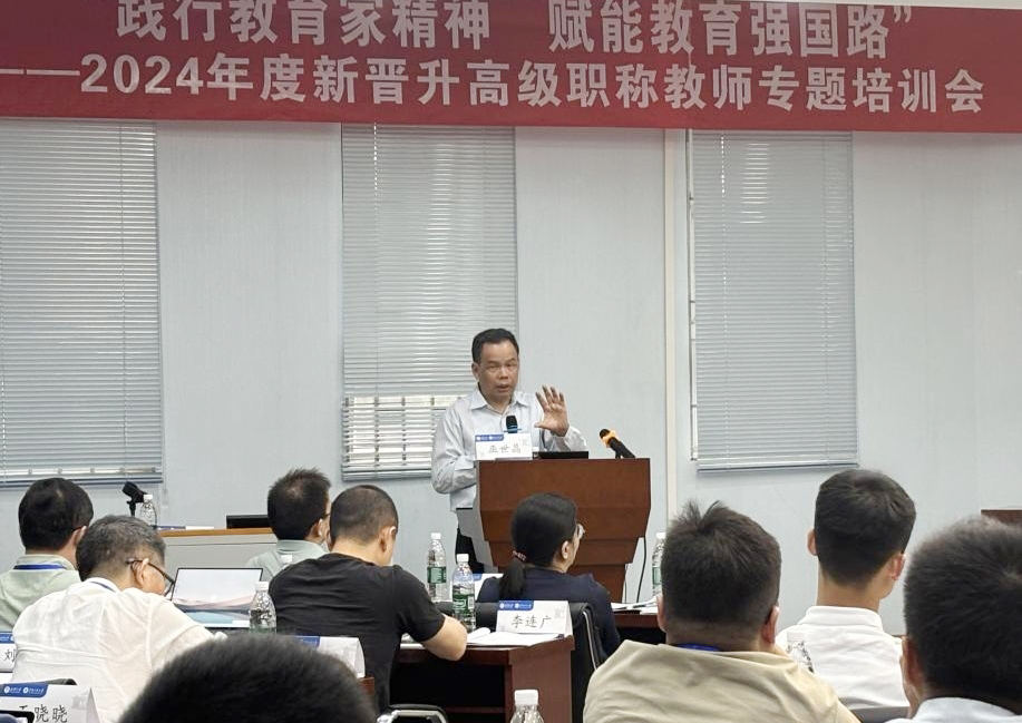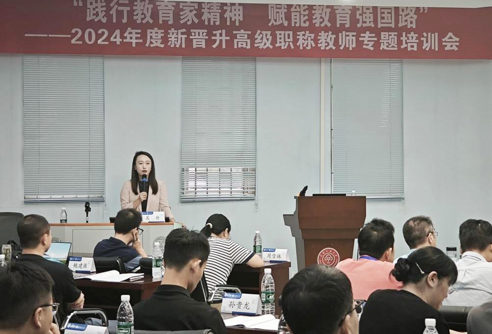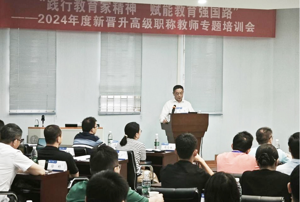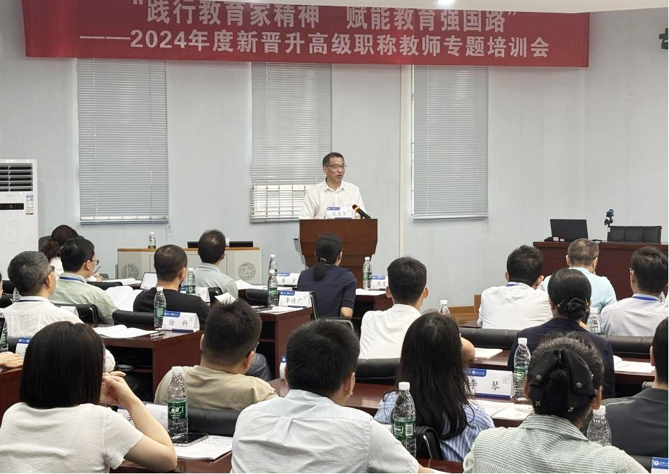 6月7日—8日,我校舉行“踐行教育家精神 賦能教育強國路”2024年度新晉高級職稱教師專題培訓會。50位新晉高級職稱教師參加了培訓。校黨委副書記、校長劉義現場授課,校黨委副書記、副校長宋發軍出席會議,培訓會由黨委教師工作部部長江瑩主持。