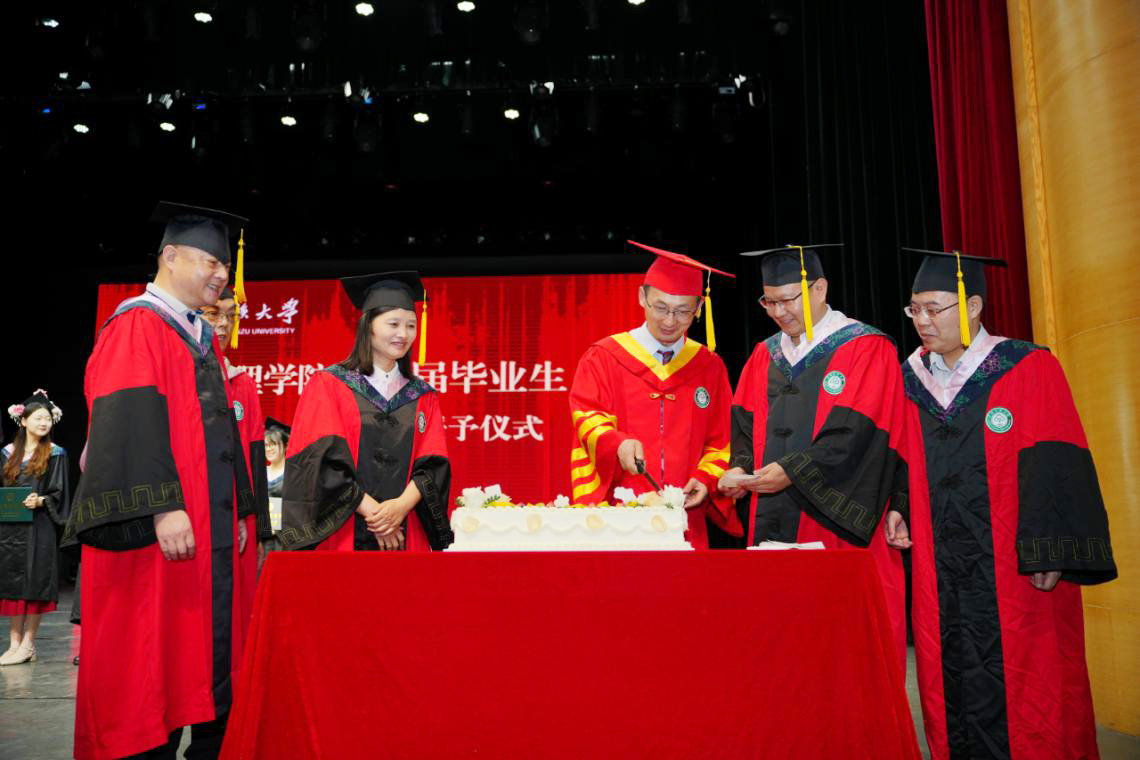 在管理學院2025屆畢業(yè)生學位授予儀式上,校黨委常委、副校長方德斌分發(fā)學院為畢業(yè)生準備的畢業(yè)蛋糕,祝福畢業(yè)生們前程似錦、未來可期。管院供圖
