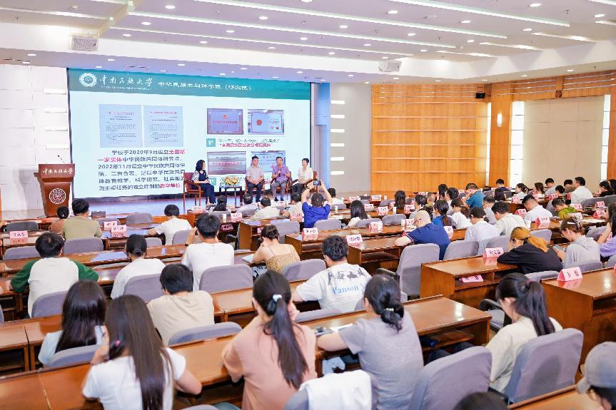 6月30日下午,由校工會主辦、各基層工會協辦的第十期“榜樣的力量”先進人物系列訪談在學術交流中心舉行。校黨委副書記、副校長、工會主席宋發軍出席活動。本次訪談邀請了藥學院院長付海燕,科學研究發展院院長張道洪,民族學與社會學學院院長陳祥軍,中華民族共同體學院院長李從浩,副院長李學保、方清云作為訪談嘉賓。活動由外語學院張佩老師主持,吸引了各學院師生代表等百余人參加。