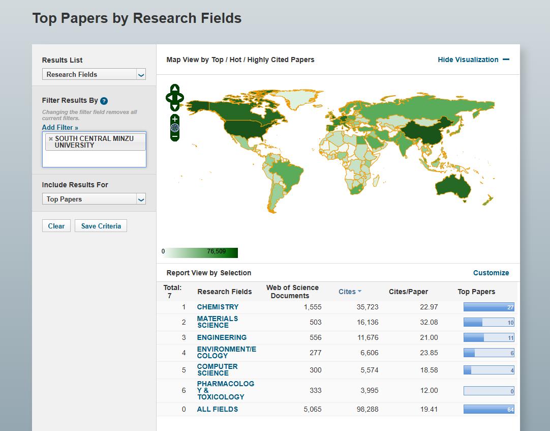 本期全球有1370家機構進入藥理學與毒理學全球ESI前1%,我校藥理學與毒理學學科排名1357,發文333篇,總被引頻次達3995,篇均被引達12。至此,我校已有化學、材料學、工程學、環境學與生態學、計算機科學及藥理學與毒理學共計6個學科躋身ESI全球前1%。其中,化學學科表現尤為亮眼,其中ESI排名已進入全球3‰。