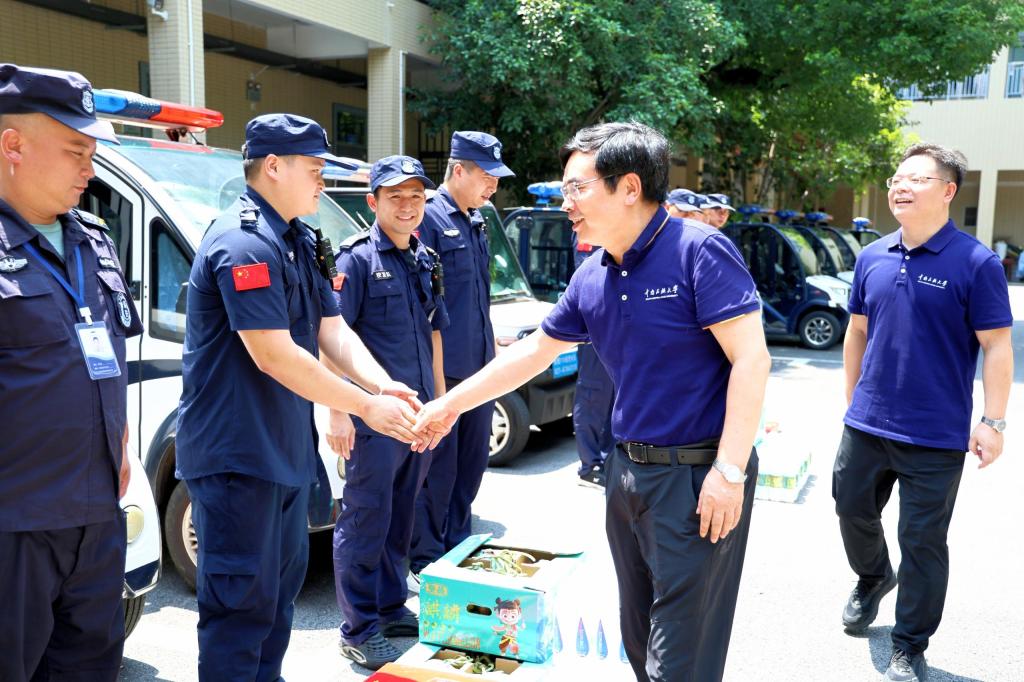 7月18日上午,校黨委書記徐業勤,校黨委副書記、校長劉義帶隊,分別走訪了黨委保衛部、后勤保障處、校醫院、基建處、黨委學生工作部值班點和體育學院訓練現場,慰問暑假堅守一線的教職工,了解值班工作情況,叮囑各單位全力做好暑假期間各項工作,對大家在高溫期間堅守崗位、盡職盡責表示誠摯的感謝和問候,并為所有堅守一線教職工送去了防暑慰問品。