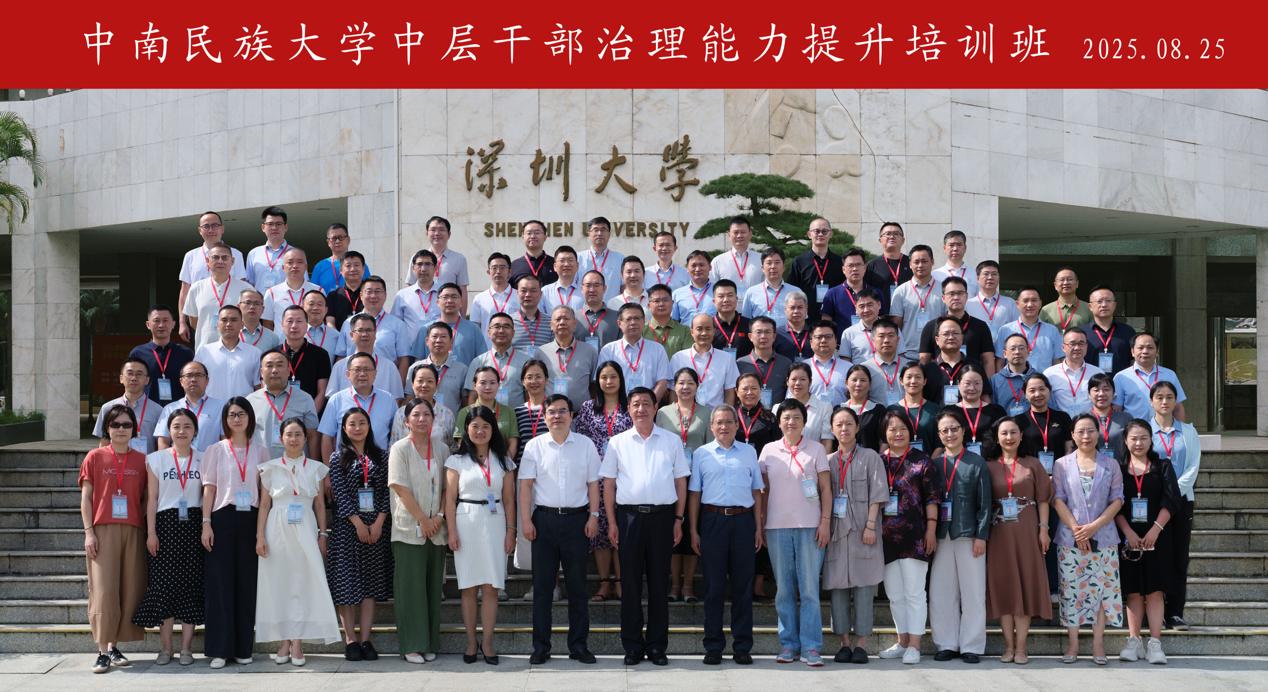 為深入學習貫徹習近平新時代中國特色社會主義思想和黨的二十大及二十屆二中、三中全會精神、中央民族工作會議精神,特別是習近平總書記關于加強和改進民族工作的重要思想、關于教育的重要論述,聚焦教育強國建設,錨定轉型升級高質量發展,進一步拓寬干部視野,提升中層干部履職能力,8月24日至8月30日,學校在深圳大學舉辦2025年暑期中層干部治理能力提升培訓班。