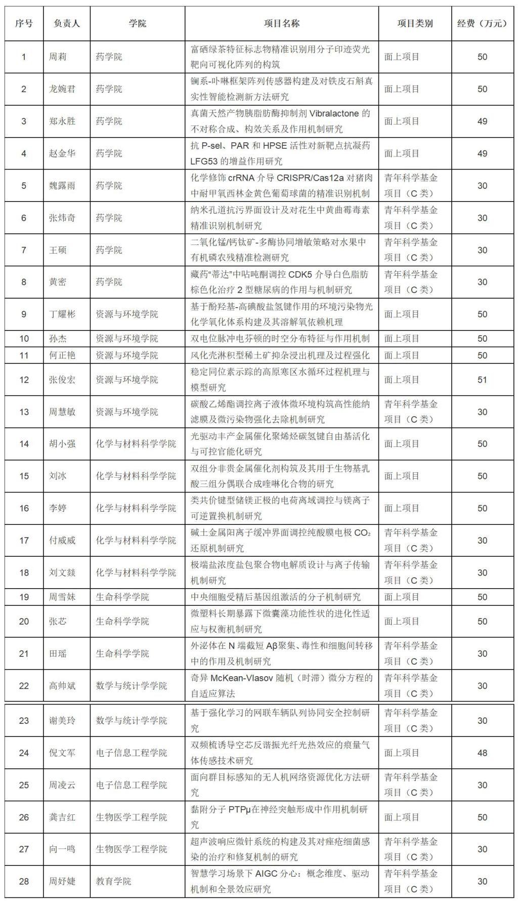 我校2025年度國家自然科學基金項目立項清單