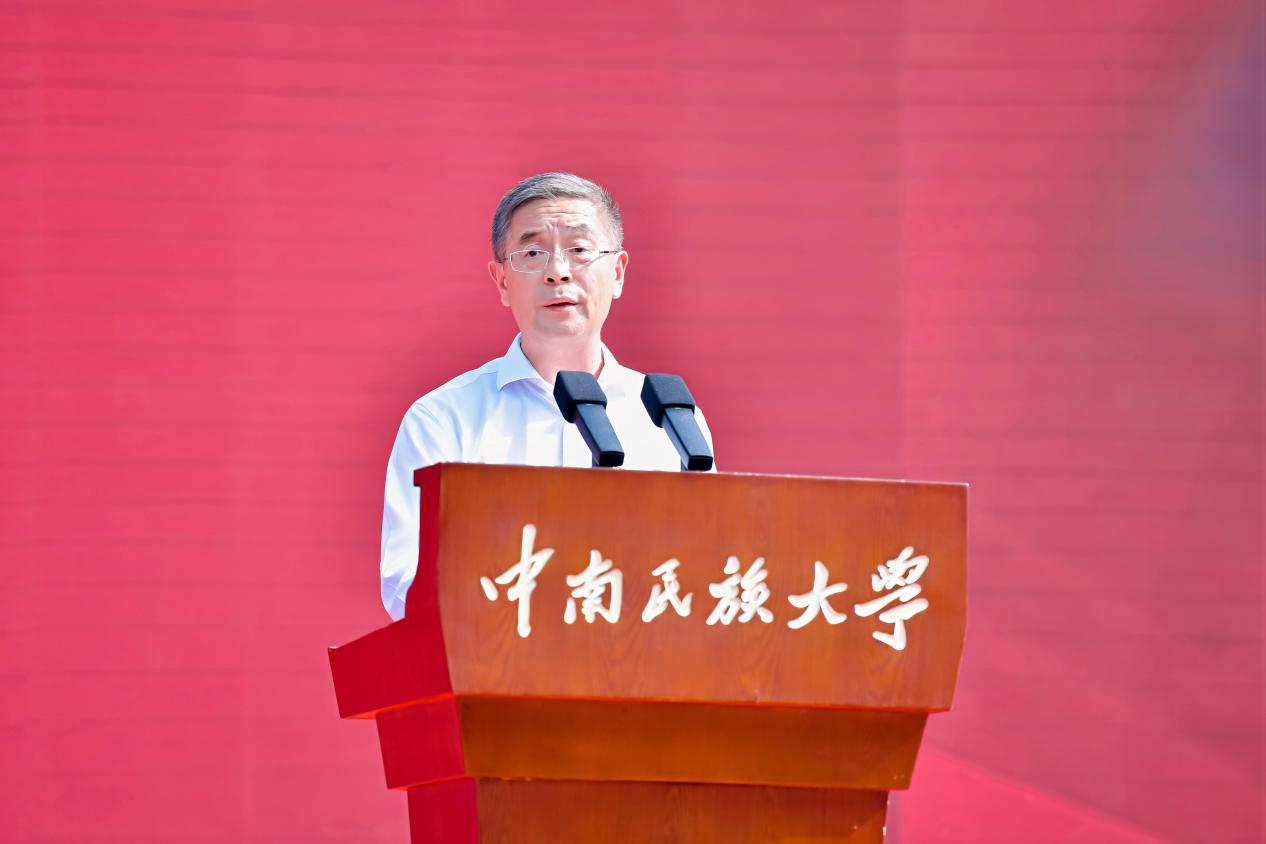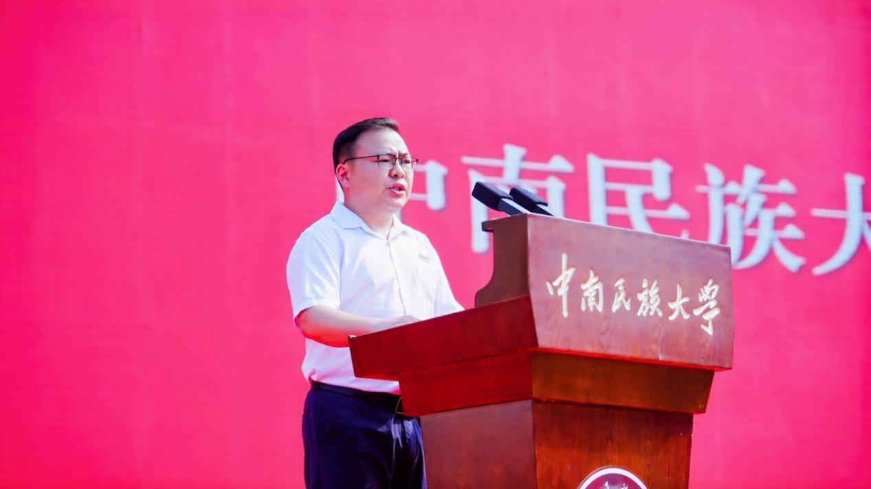 劉義以《答好青春之問,不負時代重托》為題致辭。他代表全校師生向2025級新生表示熱烈歡迎,并回顧了學校自延安民族學院一脈相承的紅色基因與74年辦學征程,強調學校始終堅守“為黨育人、為國育才”的初心使命。他期待同學們能以信仰之筆,書寫家國大我;以勤學之犁,深耕專業沃土;以創新之刃,開拓未來疆界;以團結之槳,共赴星辰大海。他希望大家以堅定回答迷惘、以勤學回應期待、以創新開創未來、以團結照亮彼此。最后,劉義殷切寄語新生,“愿你們從南湖畔啟航,愛我中華、勇擔使命,不負盛世、無愧青春。”