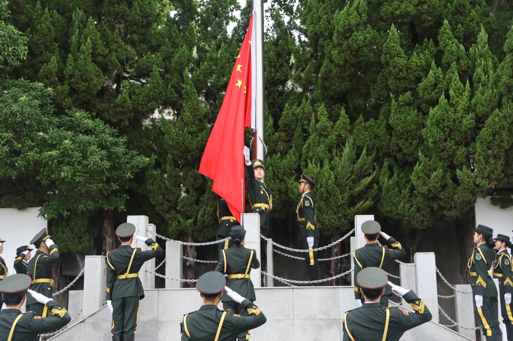 升旗現(xiàn)場(chǎng)莊嚴(yán)肅穆。蔡博軒攝