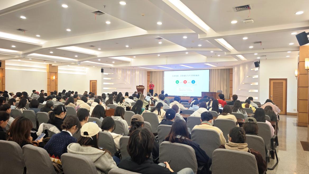 講座中,高遠飛以《回首離校30年——人生幾點感悟》為題,結合自身在廣西揚翔集團30年的職業生涯,為師生帶來兼具實踐深度與思想價值的分享。他提及親歷中國農牧業兩次變革:20世紀90年代末推動企業聚焦豬料、建“產品+技術+服務”模式,助力其成為廣西飼料業龍頭;2009年起參與企業聯合高校創新養豬技術、推數智化方案,推動企業多業務居行業前列。針對學生關切的“專業對口”“職業起步”,他結合自身檔案管理專業出身、從零入農牧業的經歷,強調學習、思考、動手能力是職場核心競爭力,鼓勵學生打破專業局限、從基層做起,在解決行業問題中實現個人與企業價值雙贏。他還分享了企業用數智技術節糧助國家糧食安全的實踐,傳遞“立足實踐、關注國之大者”的理念。在互動環節中,高遠飛耐心解答了學生關于農牧行業就業前景、跨專業求職準備等問題,以“大部分人能專注做好一件事就很了不起”的真誠建議,引導學生聚焦目標、深耕領域,樸實而深刻的話語贏得了現場師生的陣陣掌聲。