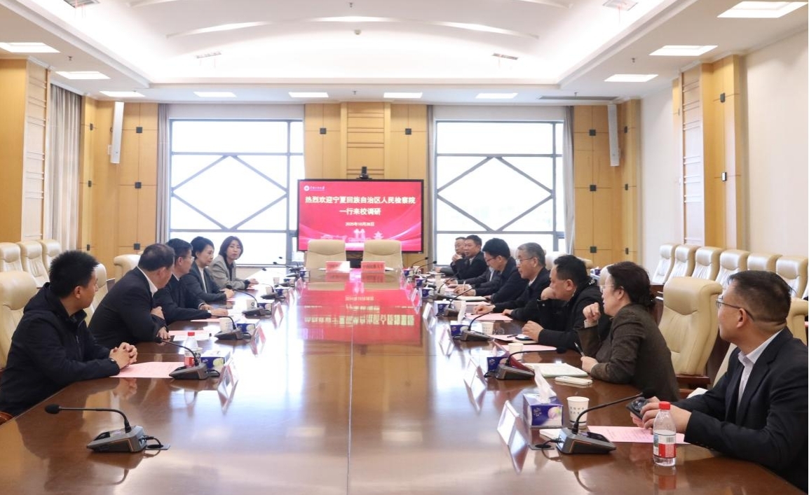 10月28日上午,寧夏回族自治區(qū)人民檢察院黨組副書記、副檢察長(zhǎng)馬劍勇,副檢察長(zhǎng)楊愛琴一行來校調(diào)研交流。調(diào)研座談會(huì)在學(xué)術(shù)交流中心舉行。我校黨委副書記、校長(zhǎng)劉義,黨委常委、副校長(zhǎng)方德斌,以及雙方相關(guān)部門負(fù)責(zé)人參加座談。會(huì)議由方德斌主持。
