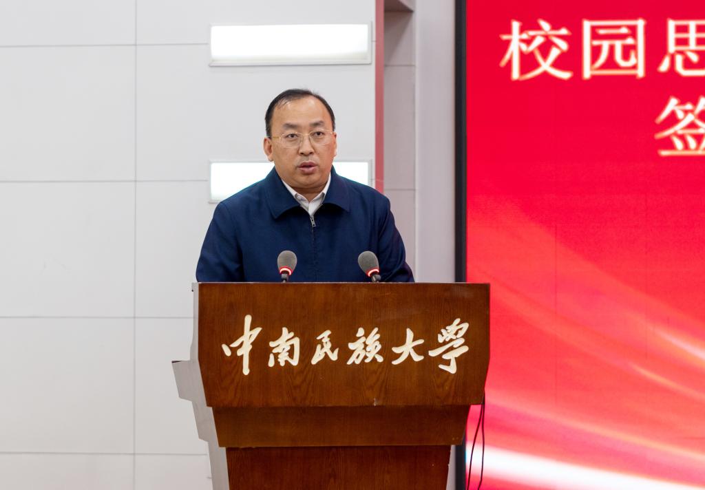 朱雨龍介紹了湖北長江電影集團近年來的發展情況,他表示,此次合作是落實習近平總書記關于文化惠民工程重要指示的有力舉措,希望通過此次校企合作進一步加強高校思想文化陣地建設,豐富校園精神文化生活,更好地落實立德樹人根本任務,為高校思想政治教育注入鮮活力量。