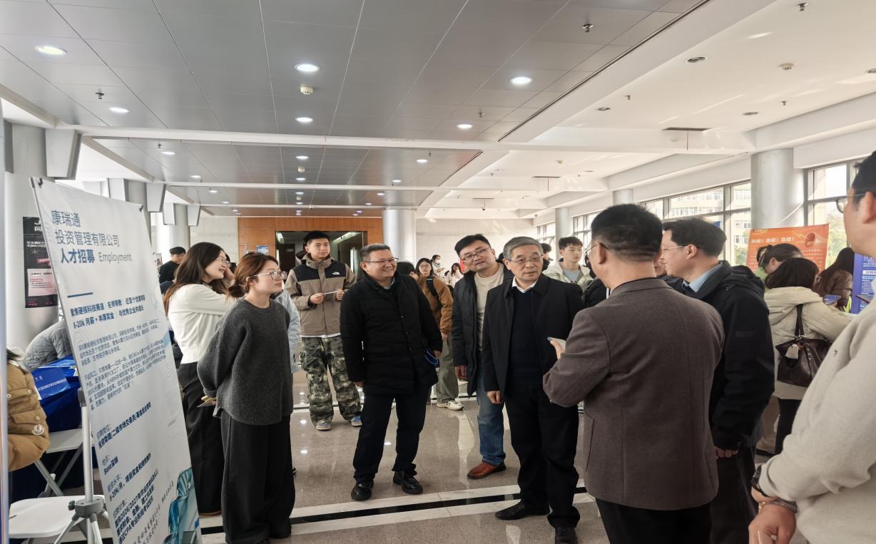校黨委副書記、校長劉義到現場指導工作,逐一走訪多家企業展位,與用人單位負責人深入交流,詳細了解行業招聘趨勢與學生求職情況。