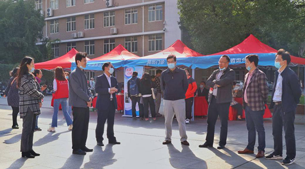 11月8日,由中共洪山區委組織部、洪山區人力資源局和我校招生就業工作處、黨委研究生工作部和經濟學院共同主辦的2020年“大學之城就業節”中南民族大學專場招聘會在15號教學樓前廣場舉行,活動邀請了70余家企業參加,吸引全校1000余名畢業生前來應聘。校長李金林、副校長杜冬云和洪山區相關單位、學校相關職能部門負責人到現場指導工作,了解招聘會的有關情況。