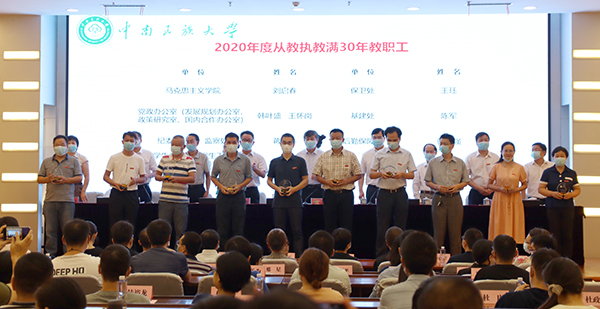 校黨委書記邊境代表學校黨委向受表彰的教師表示祝賀,向為學校發展作出貢獻的老教師、老同志致以敬意,向全體教職工致以節日的問候。他高度肯定了我校教職工在疫情防控阻擊戰以及暑期戰洪防汛中的優異表現。他指出,教師是教育發展的第一資源,我們要牢記習近平總書記對教育工作者的囑托,永葆愛黨愛國之心,在共克時艱中鑄牢中華民族共同體意識;要弘揚高尚師德,在崇德修身中以德育人、以文化人;要強化使命擔當,在教書育人中踐行立德樹人的初心,不斷提升教書育人的本領。他號召大家繼續發揚顧大局、勇擔當,不畏艱險、頑強不屈的精神,為建設特色鮮明、人民更加滿意的高水平民族大學奉獻更大的力量。