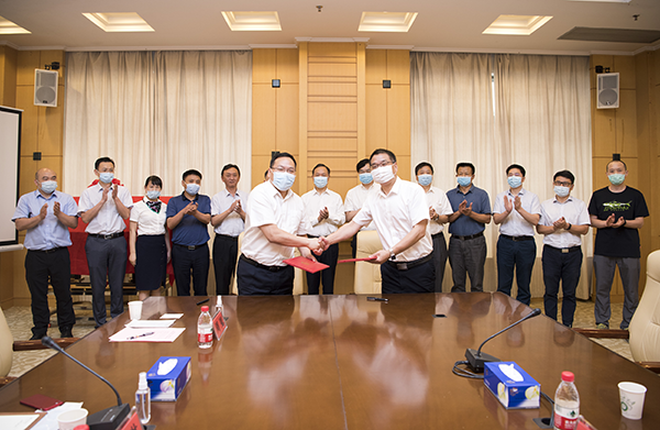 隨后,宋發軍與石三平代表雙方簽訂戰略合作協議,杜冬云與余毅共同為“卓越人才聯合培養基地”和“泛在互聯與智能計算聯合工程研究中心”揭牌。李洪波為我校教師陳少平、楊春勇、朱翠濤、聞亮、戴鋒授高級顧問聘書。李金林向李洪波、石三平授客座教授聘書。