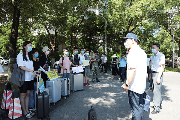 校領導楊勝才、韓葉盛、宋發軍來到學校大門口,迎接久別的學子重回校園。宋發軍代表學校向同學們表示慰問。他指出,學校為畢業生返校做好了充分準備,同學們馬上要走上社會,或進一步深造,祝福大家前程似錦,走好人生的下一步,母校永遠在身后。
