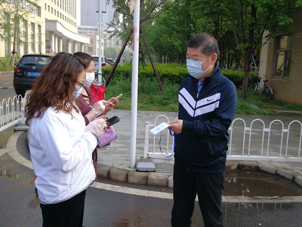 請掃碼、請量體溫、請出示通行證、請車輛按進出排隊通行、請有序領取快遞及團購物資……學校西區北二門、東家屬區大門門崗值守多了許多認真工作的“新”面孔。自4月27日起,來自學校臨時黨支部的志愿者們在此每天開展12個小時的門崗輪值工作。