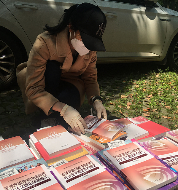 為準(zhǔn)確、快速地將教材寄送至學(xué)生手中,教務(wù)處及各學(xué)院相關(guān)工作人員加班加點做好信息統(tǒng)計、核對工作。許多學(xué)院的黨政領(lǐng)導(dǎo)、輔導(dǎo)員、教學(xué)秘書分期分批到現(xiàn)場進(jìn)行核對。書商、快遞公司和學(xué)院分工明確,各司其職,銜接有序地完成揀書、核對、消毒、裝袋、打包、貼單、搬運等工作。