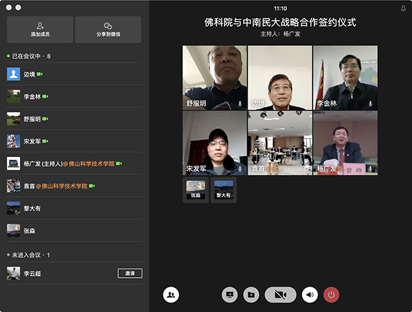 我校與佛山科學技術學院進行戰略合作視頻簽約。學校辦公室供圖