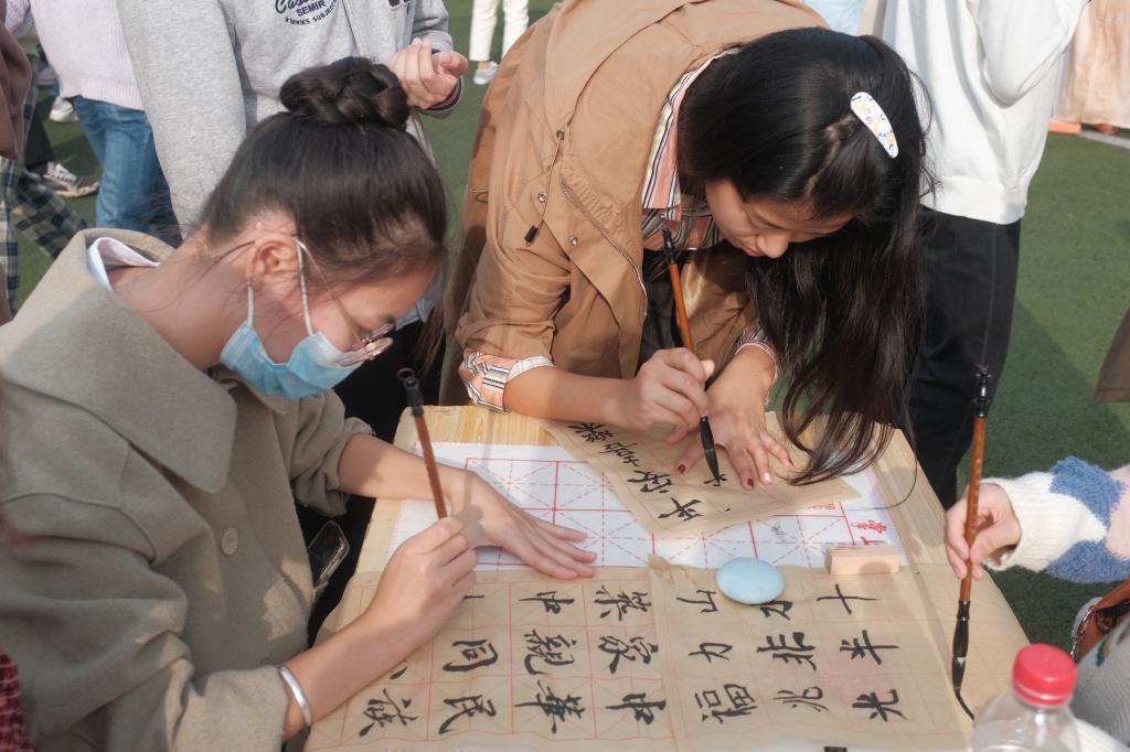 師生體驗(yàn)扎染、書法等技藝。狄廣源、楊可怡 攝