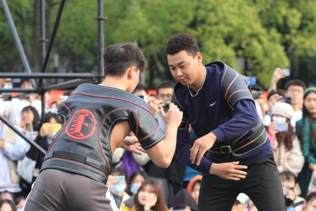 隨著一陣又一陣的叫好聲響起,蒙古族展區(qū)的小型“那達(dá)慕大會(huì)”掀起了高潮,其中的摔跤比賽更令許多同學(xué)駐足觀看、拍手叫好,來自體育學(xué)院的大三學(xué)生于振鵬表示:“感覺非常有野性,是力量與力量之間的競爭,看著很過癮。”