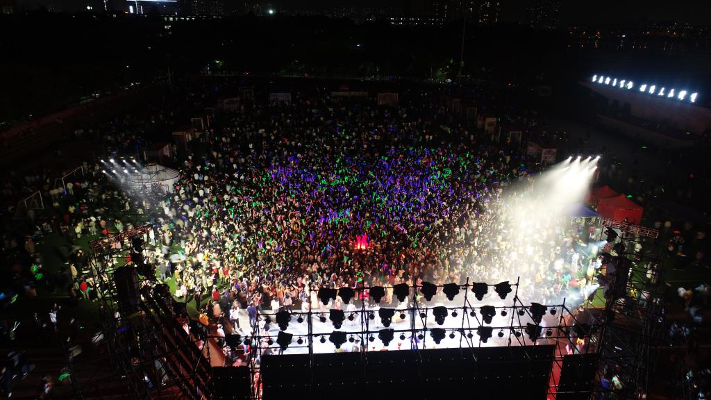 下午13:00,南湖田徑場已人頭攢動(dòng)。開場舞蹈《心聲》的舞曲一出,全場便響起雷鳴般的掌聲,舞者們身著金絲點(diǎn)綴的紅色藏袍,將“吉祥如意”的美好祝福融入舞步,最后以“唱著山歌給黨聽”作為結(jié)尾,現(xiàn)場觀眾的熱情被徹底點(diǎn)燃。