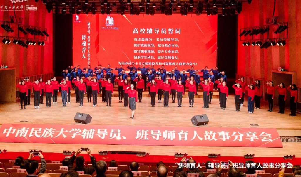 邊境代表學校黨委對幾代民大人為學校人才培養、改革發展作出的貢獻表示感謝,對新入職和獲表彰的同志表示祝賀。他就加強和改進思想政治工作,全面落實“三全育人”提出了要求:一是深刻認識思想政治工作的意義。要把提高學生培養質量作為學校各項工作的出發點和落腳點,全面落實“三全育人”要求。二是抓實抓好思想政治工作隊伍建設。要配齊建強工作隊伍,完善專職輔導員職業發展體系,挖掘和宣傳思政育人文化。三是構建并完善“三全育人”工作體系。要構建“大”的格局,突出“全”的理念,把好“育”的導向,引導廣大學生樹立正確的世界觀、人生觀和價值觀,堅定理想信念、練就過硬本領、錘煉高尚品格。他希望輔導員、班導師不斷增強為黨育人、為國育才的崇高使命感和強烈責任感,全力營造“人人、事事、時時、處處皆育人”的生動局面,努力當好學生成長成才的知心人、暖心人和引路人,切實鑄牢青年學生中華民族共同體意識,努力培養更多堪當民族復興大任的時代新人。