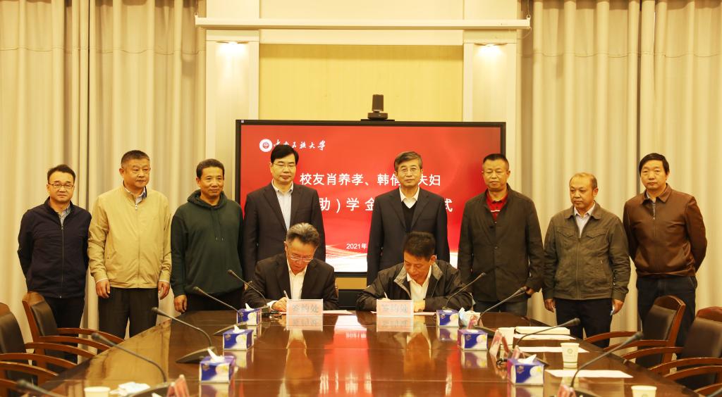 白江源代表校教育發(fā)展基金會與肖養(yǎng)孝、王世勇分別簽訂捐贈協(xié)議。李金林代表學(xué)校接受捐贈,邊境向肖養(yǎng)孝韓倩瑤夫婦、韋忠南頒發(fā)捐贈證書。
