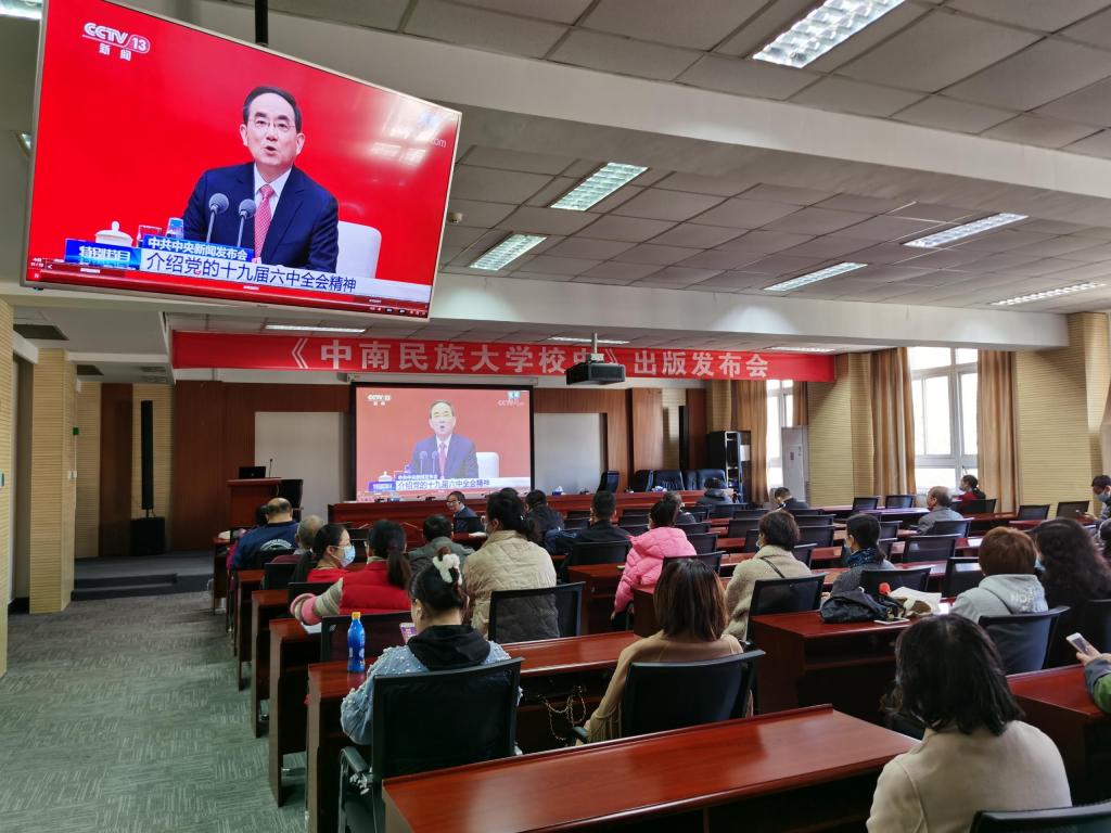 11月8日至11日,黨的十九屆六中全會在北京舉行,審議通過了《中共中央關于黨的百年奮斗重大成就和歷史經驗的決議》(以下簡稱《決議》),審議通過了《關于召開黨的第二十次全國代表大會的決議》。黨的十九屆六中全會召開后,學校黨委及時部署,組織各族師生集中收聽收看黨的十九屆六中全會精神新聞發布會,認真學習會議精神。大家一致表示,這是一次繼往開來的重要會議,審議通過的《決議》是我們黨的歷史上又一篇里程碑式的重要文獻,要認真學習貫徹落實全會精神,緊密團結在以習近平同志為核心的黨中央周圍,以習近平新時代中國特色社會主義思想為指導,大力弘揚偉大建黨精神,堅定理想信念,牢記初心使命,在新時代新征程上繼續書寫好民大發展新篇章。