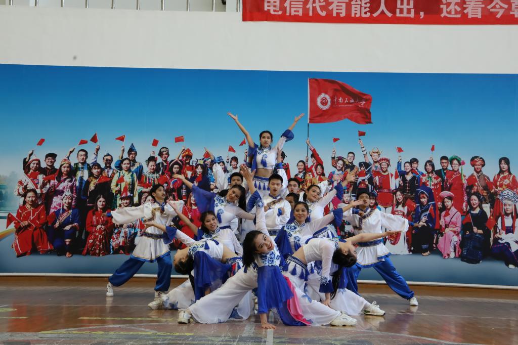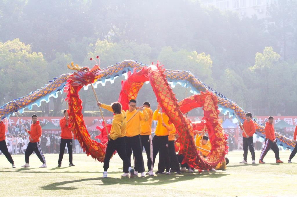 精彩的文體表演隨即開場。校舞龍舞獅隊帶來《龍騰獅躍》,以應接不暇的靈動場面令人目不轉睛;舞蹈《母親是中華》在舉手投足間展現各民族團結和諧之態;行云流水的武術表演更是將中國優秀武術傳統完美詮釋;培養了5名世界冠軍、36名全國冠軍的校跳繩隊在動感音樂中展示了高超的跳繩技巧;來自19個學院的200余名學生共同跳起融合各民族典型舞蹈元素的健身操《中華家園》,場上維吾爾族熱情的紅,蒙古族奔放的藍,佤族神秘的黑……相互交融,表達了“中華民族一家親”的美好愿景,也表達了對學校70年華誕的深深祝福。
