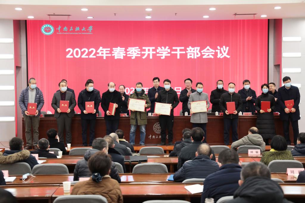 李金林總結了寒假期間各單位主要工作,布置了學校2022年工作。2022年,是新時代新征程中具有特殊重要意義的一年,是貫徹落實中央民族工作會議精神的關鍵之年,是實施學校“十四五”規劃的全面推進之年。學校2022年總體工作思路是:堅持以習近平新時代中國特色社會主義思想為指導,深入貫徹落實黨的十九大和十九屆歷次全會精神,認真學習貫徹習近平總書記關于加強和改進民族工作的重要思想、關于教育和人才工作的重要論述、中央民族工作會議精神,堅持穩字當頭、穩中求進,堅持以鑄牢中華民族共同體意識為主線,立德樹人、守正創新、攻堅克難、守住底線,推動學校內涵式高質量發展,以優異的成績迎接黨的二十大勝利召開。學校重點工作主要有以下4個方面:一、深入學習貫徹習近平新時代中國特色社會主義思想,全面提升黨的建設質量。二、聚焦鑄牢中華民族共同體意識工作主線,深入推進各族師生共有精神家園建設。三、堅持立德樹人根本任務,深入推進學校“雙一流”建設。四、提升學校治理水平,夯實事業發展基礎。他強調,一要穩中求進,堅持穩字當頭,確保校園安全穩定的基本底線,重點提升學校的核心競爭力。要持續抓好人才工作,持續抓好學科建設,持續提升科研和社會服務水平,狠抓人才培養質量的提升。二要夯實基礎。要夯實戰略基礎,夯實制度基礎,夯實工作基礎。三要建強基層。要抓好黨的建設,抓好制度建設,抓好班子建設。四要狠抓落實。要把方向重落實,強管理抓落實,謀發展促落實,聚合力保落實。