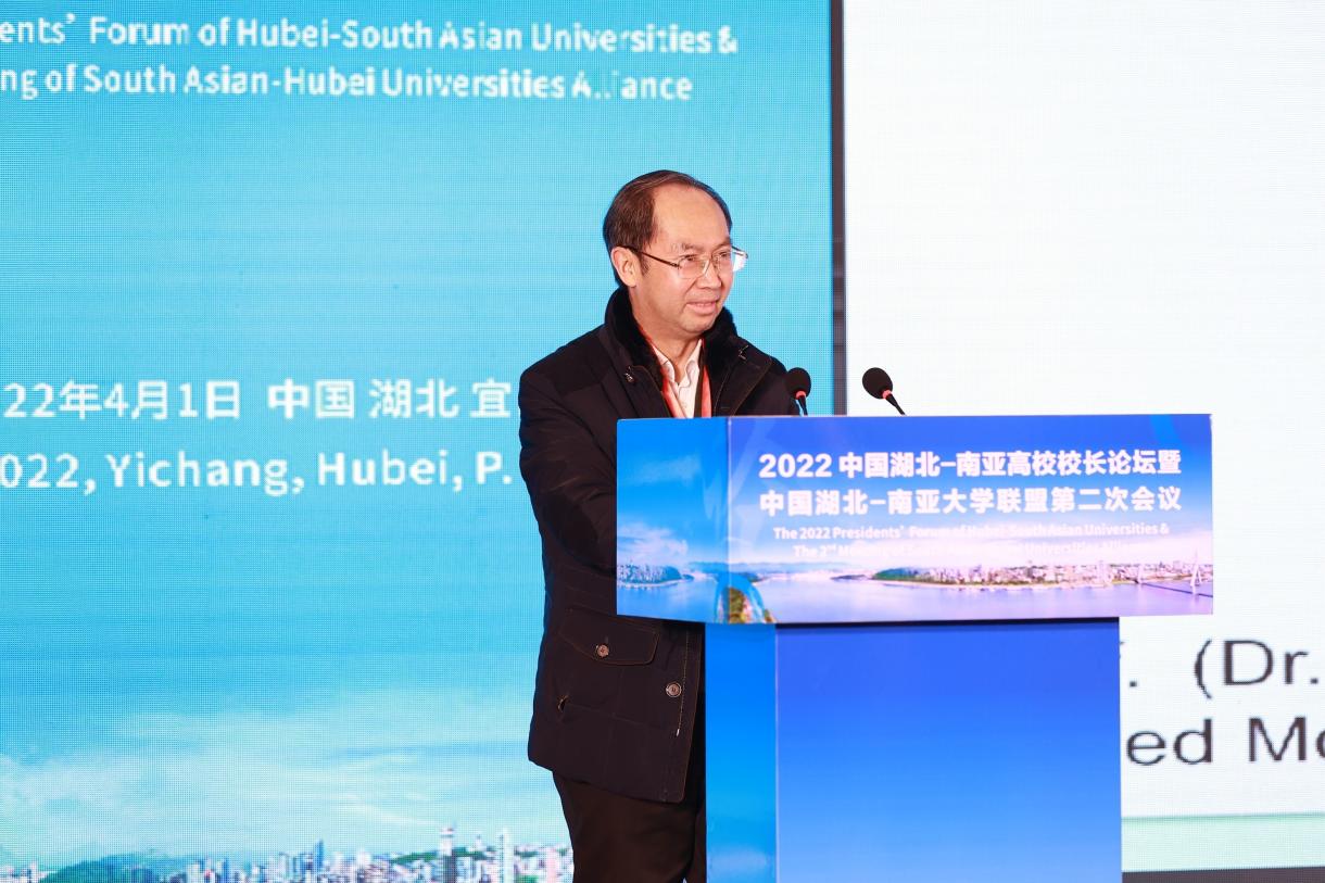4月1日,由湖北省教育廳主辦、三峽大學承辦的2022中國湖北-南亞高校校長論壇暨中國湖北-南亞大學聯盟第二次會議在三峽大學線上線下結合舉行。湖北省教育廳副廳長余學敏、宜昌市人民政府副市長張金安、11所中方高校和機構、18所南亞高校和機構的70名代表參會。我校副校長段超應邀出席,主持分論壇并作主旨演講。