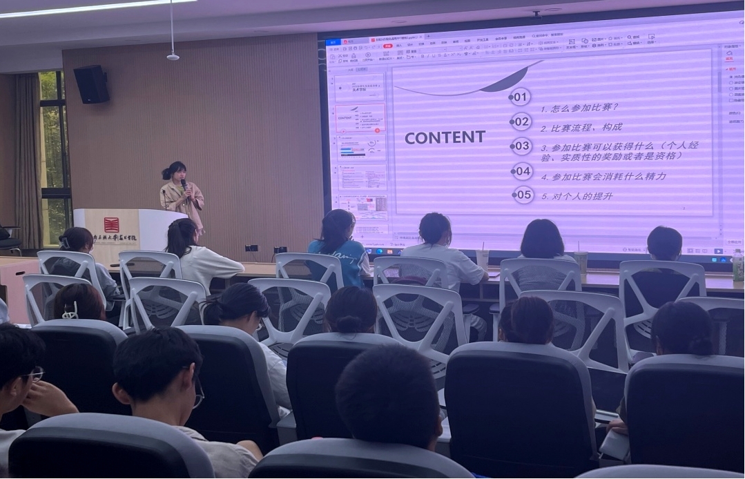 活動(dòng)由2022級(jí)藝術(shù)設(shè)計(jì)專業(yè)環(huán)境設(shè)計(jì)方向保研推免生楊晴月開啟。她細(xì)數(shù)了自身從大一至大四成長過往的點(diǎn)滴與趣事,并精心為各位學(xué)弟學(xué)妹們準(zhǔn)備了詳細(xì)的專業(yè)知識(shí)圖譜、學(xué)業(yè)擴(kuò)展路徑、各大專業(yè)賽事參賽指南等,贏得了陣陣熱烈的掌聲。
