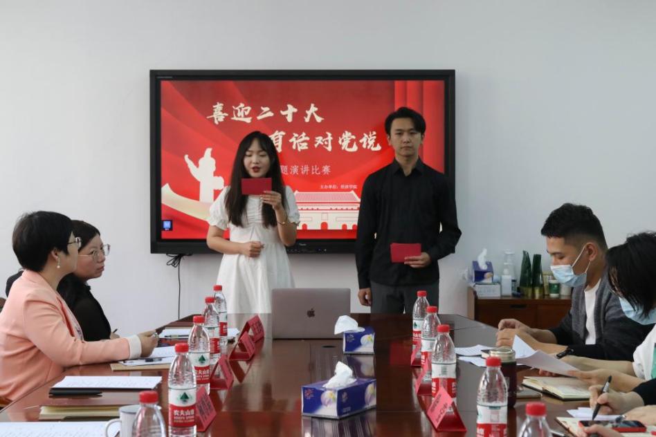 為貫徹落實習近平總書記關于青年工作的重要思想,扎實推進愛黨愛國教育活動的開展,迎接黨的二十大勝利召開,10月14日下午,經濟學院舉辦了“喜迎二十大,有話對黨說”主題演講比賽決賽。經濟學院相關負責人參加活動,學院教工和學生黨支部書記擔任評委。