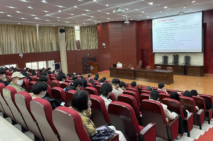 11月24日,法學(xué)院舉辦專(zhuān)場(chǎng)宣講會(huì),學(xué)校黨的二十大精神宣講團(tuán)成員、馬克思主義學(xué)院瞿曉琳教授作了題為《增強(qiáng)歷史主動(dòng),全面建設(shè)社會(huì)主義現(xiàn)代化國(guó)家》的宣講報(bào)告。學(xué)院全體教職工、各班班長(zhǎng)及團(tuán)支書(shū)等學(xué)生代表參加了本次宣講報(bào)告會(huì)。會(huì)議由學(xué)院黨委書(shū)記祁帆主持。