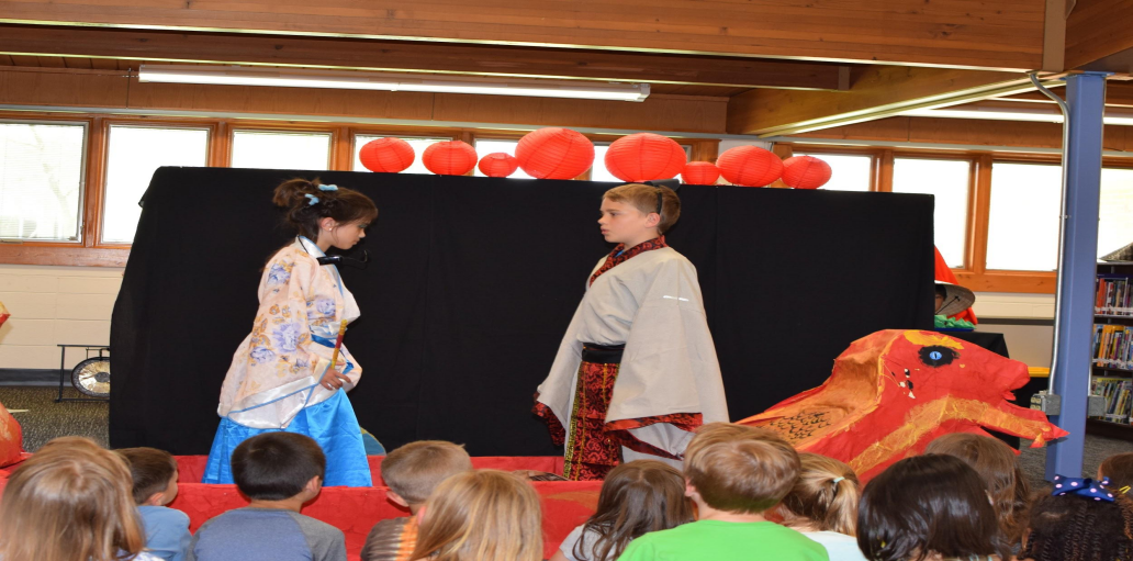 孔子課堂學生以戲劇表演形式介紹端午節傳統文化習俗。維羅納國際學校孔子課堂供圖