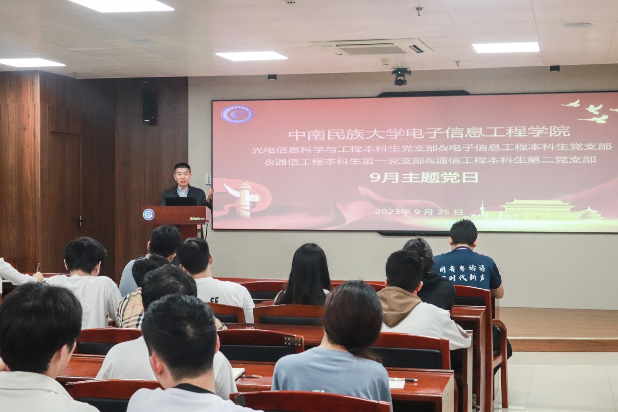 為進一步加強黨員黨性修養(yǎng),推動主題教育走深走實,9月25日晚,電子信息工程學(xué)院本科生黨支部在16號教學(xué)樓開展“學(xué)教育精神,擔(dān)強國使命”主題黨日活動。本次活動由光電信息科學(xué)與工程本科生黨支部承辦,電子信息工程本科生黨支部、通信工程本科生第一黨支部、通信工程本科生第二黨支部共同參與。華中科技大學(xué)馬克思主義學(xué)院博士汪建輝應(yīng)邀上微黨課。院黨委書記魏大江、各支部全體黨員、全體輔導(dǎo)員老師參加了活動。