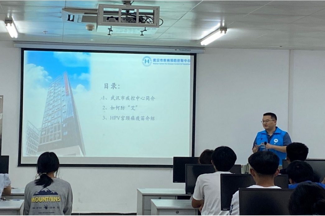 在16號教學樓,武漢市疾病預防控制中心黨支部書記汪耀首先向同學做防范艾滋病科普。他詳細講解了艾滋病的3種傳播途徑,強調預防艾滋病的關鍵是“三要”和“三避”,提醒同學們接種HPV疫苗也是艾滋病預防的重要手段之一。