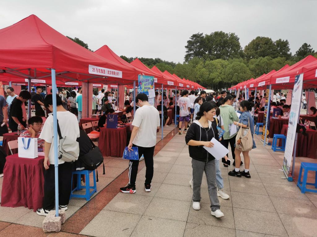 9月27日,我校在體育館前廣場舉辦武漢地區重點高校2024屆畢業生秋季聯合招聘會,北京、深圳、上海、廣州、浙江、內蒙古等地企業組團進校招聘。招生就業處聯手武漢科技大學、武漢紡織大學等高校相關部門組織畢業生參加活動。招生就業處負責人與各學院黨委書記、副書記、畢業班輔導員和班導師到現場對接用人單位,就畢業生招聘、低年級實習實訓等工作開展合作,并指導畢業生應聘求職。