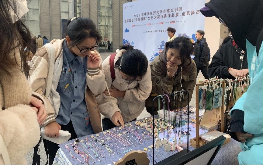 為鑄牢中華民族共同體意識,提升學生的創新創業能力,自2020年起,“最美國潮”民族非遺文創大賽已經連續舉辦了四屆,如今已具備了較好的規模效應。本屆文創集市更是將學生們的設計作品轉化為商品,讓這些充滿創新和非遺特色的文創產品走向市場,進一步推廣和傳承中華優秀傳統文化。