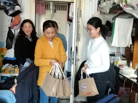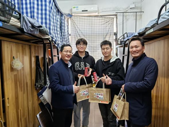 學院領導、班導師到宿舍發放考研福袋。 辛子劍 海藝凡攝