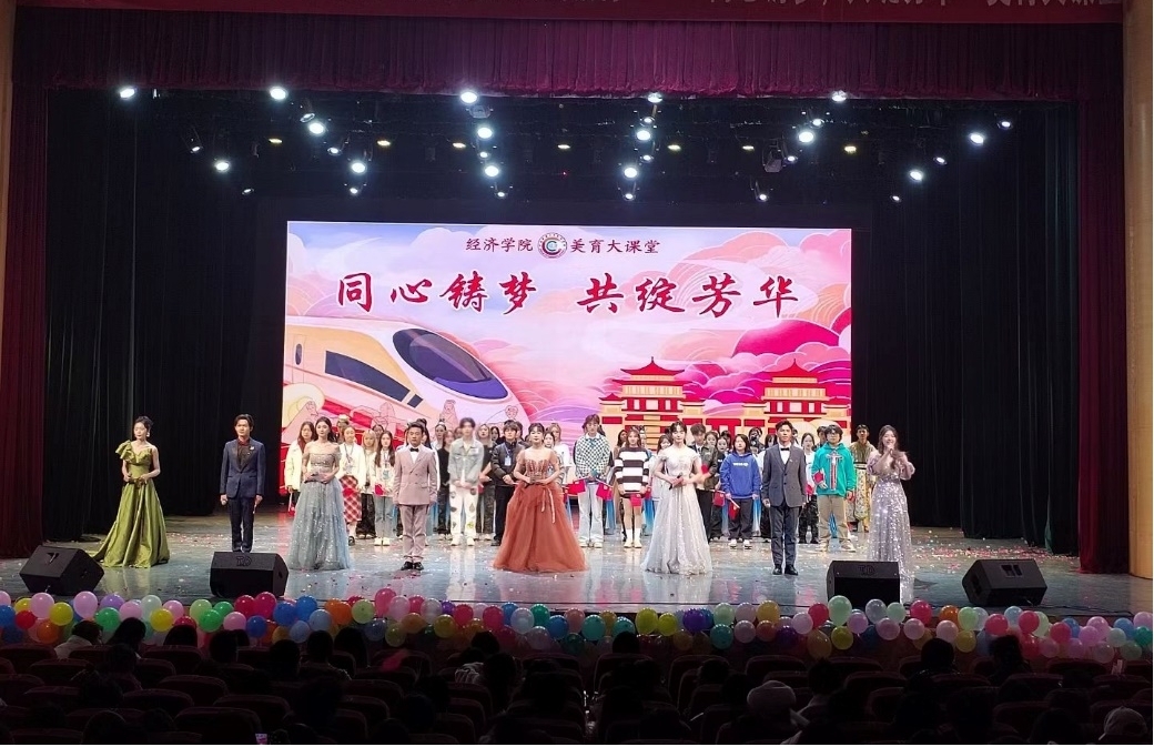 為進一步推進鑄牢中華民族共同體意識教育有形、有感、有效,培養德智體美勞全面發展的社會主義建設者和接班人,11月24日晚,經濟學院在大禮堂舉辦2023年鑄牢中華民族共同體意識實踐教育——“同心鑄夢,共綻芳華”美育大課堂。經濟學院領導班子成員、全體輔導員、班導師代表、各年級學生代表和兄弟學院團學干部代表參加了活動。