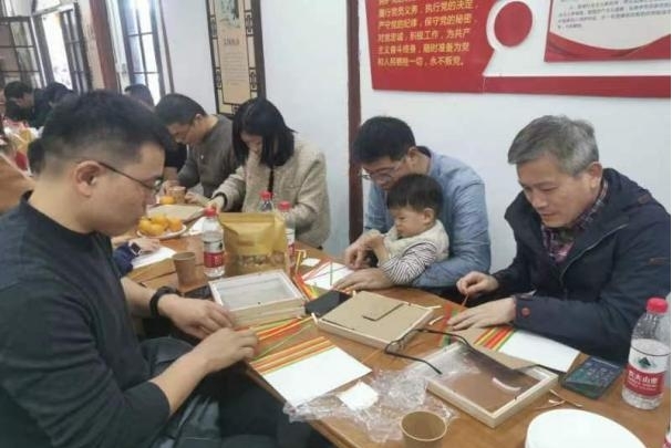 校友們認真制作非遺竹編。 寧波校友會供圖