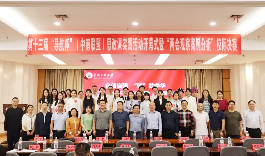 4月26日晚,第十三屆“導航杯”(中南聯盟)思政課實踐活動開幕式暨“兩會觀察”案例分析大賽校際決賽在我校學術交流中心舉行。中南聯盟16所高校馬克思主義學院負責人,我校教務處處長胡軍浩、馬克思主義學院領導,相關高校師生代表近200人參加開幕式。